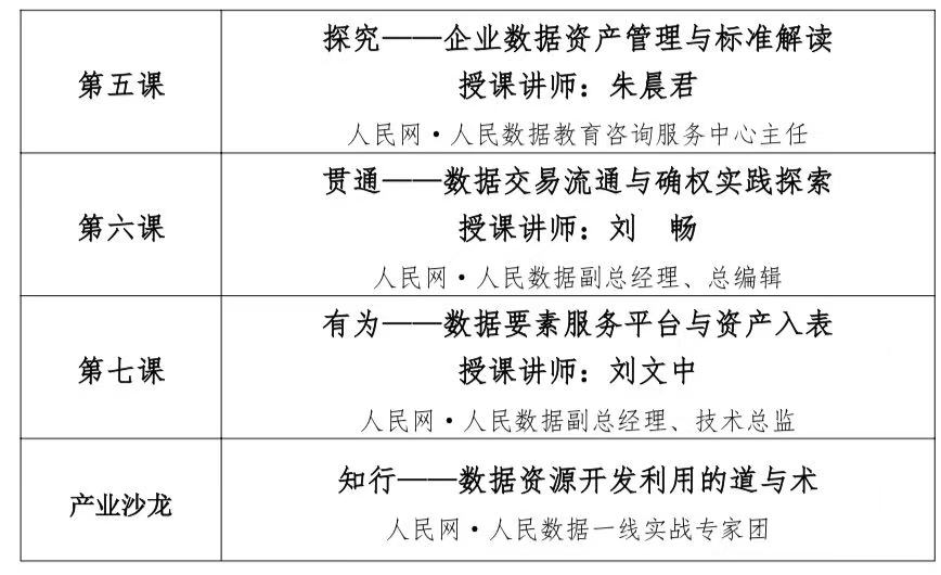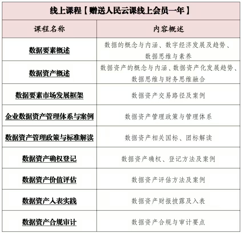 为贯彻落实国家数字经济发展战略,进一步落实数字人才队伍建设的整体要求,加快数据要素领域人才队伍建设,充分释放数据要素价值,赋能新质生产力,人民数据教育咨询服务中心依托人民数据在数据存、管、用领域的丰富经验,充分发挥“数字经济高端智库”资源,在“首席数据官”“数据资源入表实战营”的基础上,持续迭代优化,打造“数据资源开发与利用研修班”培训课程体系,采取“线上+线下”的授课模式,细化课程内容,既方便学员反复观摩实践、夯实基础,又搭建了交流分享的平台。旨在培养具备前沿数据思维和实践能力的专业人才,助力学员在数据驱动的时代浪潮中抢占先机。