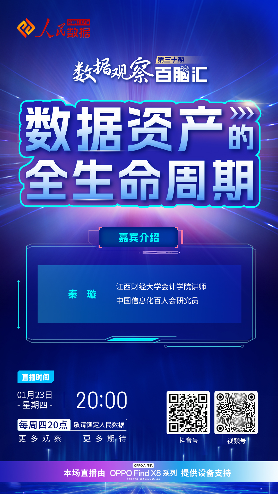 直播海报抢先看,快快扫码预约,每周四晚八点相聚在人民数据视频号!