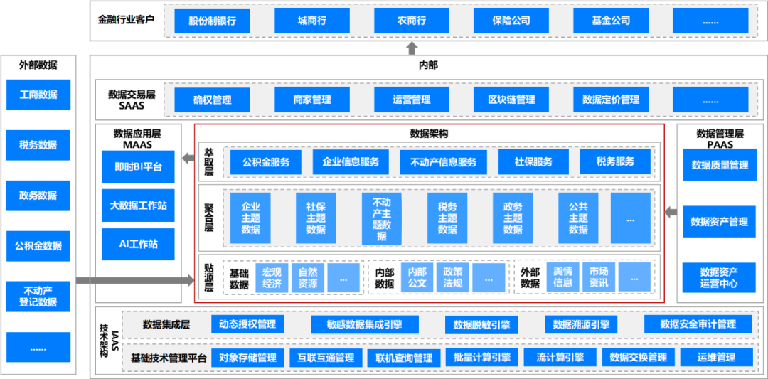 一是围绕市场需求多元化融合数据能力。围绕市场需求,通过公开采购、独立授权等方式汇聚多元数据。穿透、审核数据授权链,签订协议,获得政务类数据、企业类数据、市场类数据的经营权。目前,已沉淀14大类近4000个客户特征、2.3万个共享指标、1000多个数据服务;对外API接口69个、SFTP(SSH文件传输协议)文件798张、综合报告50张,月调用量超6500万次,系统运营稳定性达到99.96%。